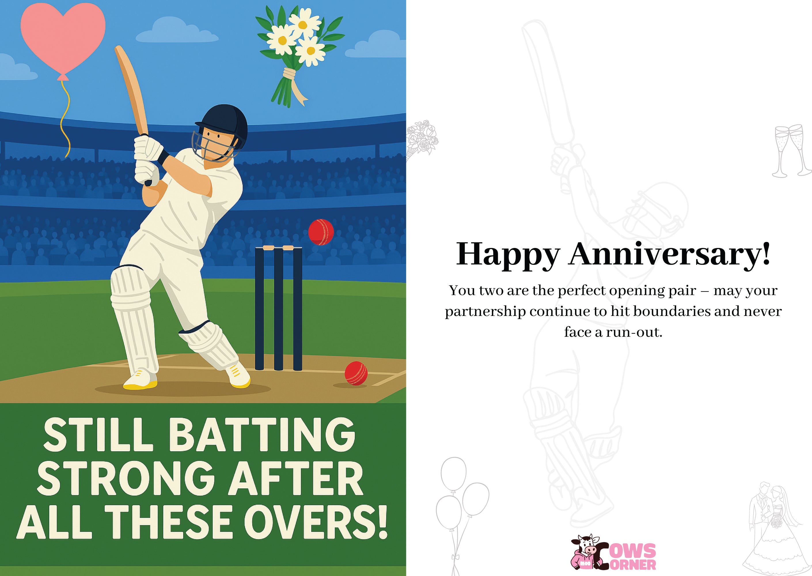 It is ideal for any couple who loves cricket and enjoys a good laugh. Whether they are celebrating a milestone anniversary or just another year together, this card will bring a smile.