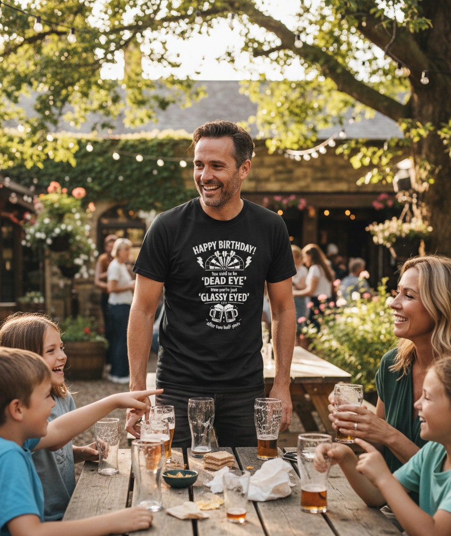 Getting your hands on a Darts Themed birthday t-shirt is the best way to celebrate a mate who spends more time hitting the wire than the treble twenty. At Cows Corner, we understand that British sports culture is built on a foundation of sideline banter and the occasional heartbreak of a missed double. This unique top is designed to capture that exact moment at the pub when the birthday boy or girl starts to lose their clinical edge after a couple of modest half pints. It is a cheeky nod to the inevitable march of time and the shift from being a dead eye on the oche to being a bit glassy eyed at the bar.