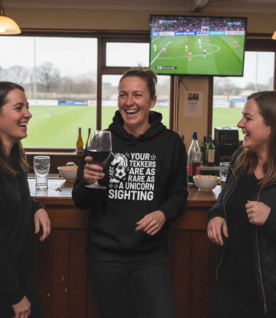If you’re looking for the perfect gift for the football fanatic in your life, or simply fancy treating yourself to something that combines style, comfort and top-tier banter, this is the hoodie you’ve been waiting for. The ‘Your Tekkers Are As Rare as a Unicorn Sighting’ hoodie is a playful nod to those “not-so-magical” moments on the pitch, making it the ideal choice for players and fans who love football just as much as they love a good laugh.