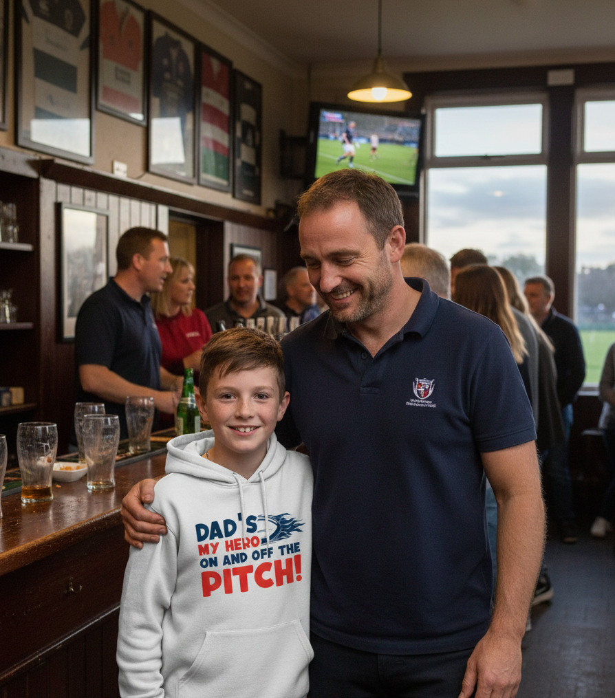 Don’t miss out on this must-have hoodie that is in stock and ready to order online today. With its affordable price and standout design, it makes the ideal purchase for anyone who wants to give a gift filled with meaning and laughter. Treat dad to this exclusive hoodie now and make sure he knows he is a hero both on and off the pitch.