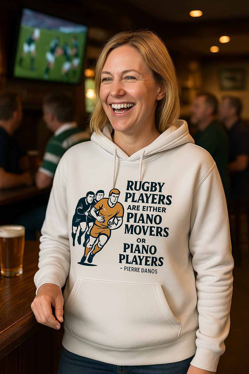 • Celebrate Classic Rugby Positional Banter: Featuring the famous Pierre Danos quote about piano movers and players this hoodie is the perfect way to acknowledge the different roles on the pitch and spark a laugh with teammates and coaches alike.