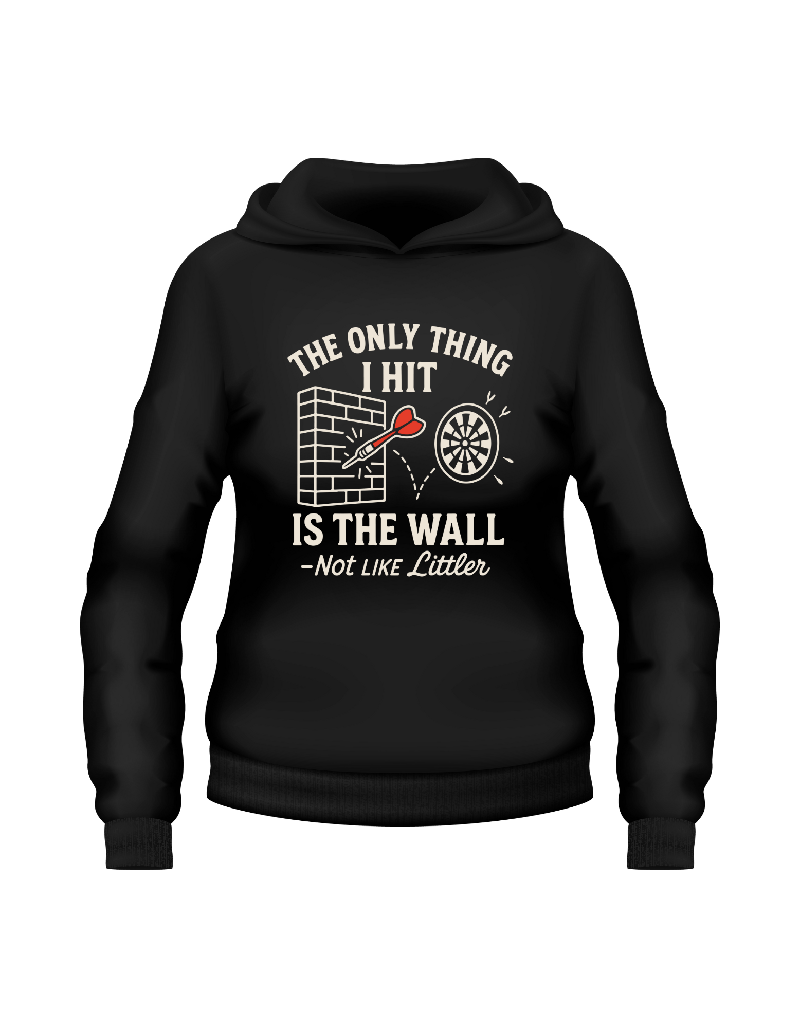 • Embrace Your Inner Pub League Player: Featuring the cheeky slogan "The Only Thing I Hit Is the Wall – Not Like Littler" this hoodie celebrates the hilarious reality of missed doubles and wayward throws that every amateur player understands.