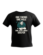 If you know someone who cannot resist a cheeky bit of golf humour or someone who loves to remind everyone about that one glorious shot, then our Funny Golf T-shirt with the slogan 'One Swing, One Hole, One Very Smug Golfer' is the perfect gift.