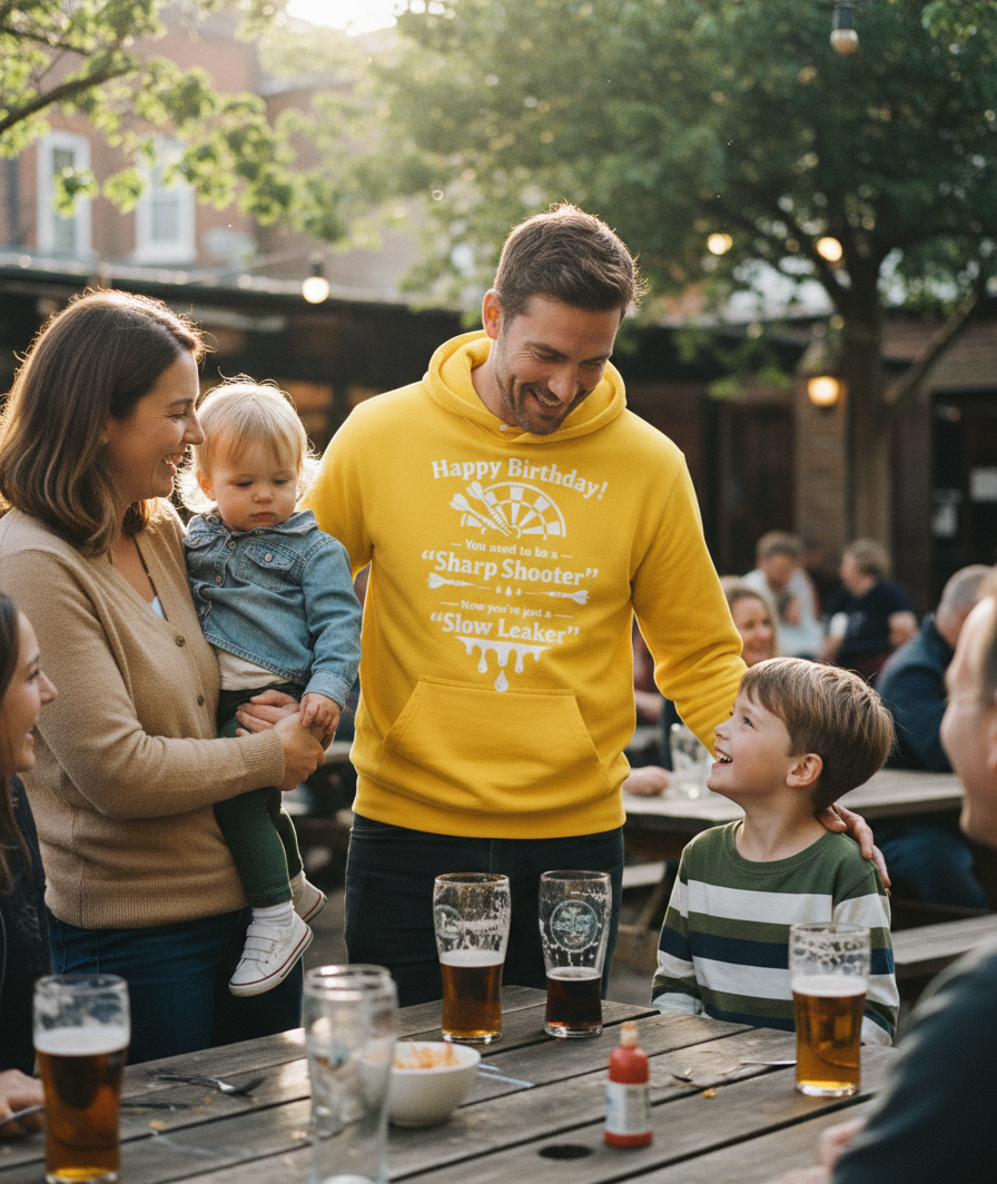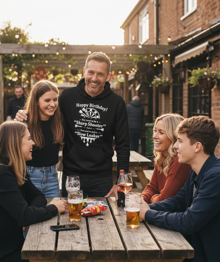 A Darts Themed birthday hoodie is the ultimate way to celebrate another year of near misses and occasional bullseyes. At Cows Corner, we know that hitting a milestone birthday is much like staring down a double sixteen when your knees are starting to creak. It is a time to trade in the professional jerseys for something that captures the true spirit of the Sunday league. This premium hoodie is not just a piece of clothing but a badge of honour for the player who has transitioned from a sharp shooter to a veteran of the pub clubhouse. Whether they are still chasing a 180 or simply enjoying the match from the comfort of the sofa, this is the best way to keep them warm while the banter flows as freely as the ale.