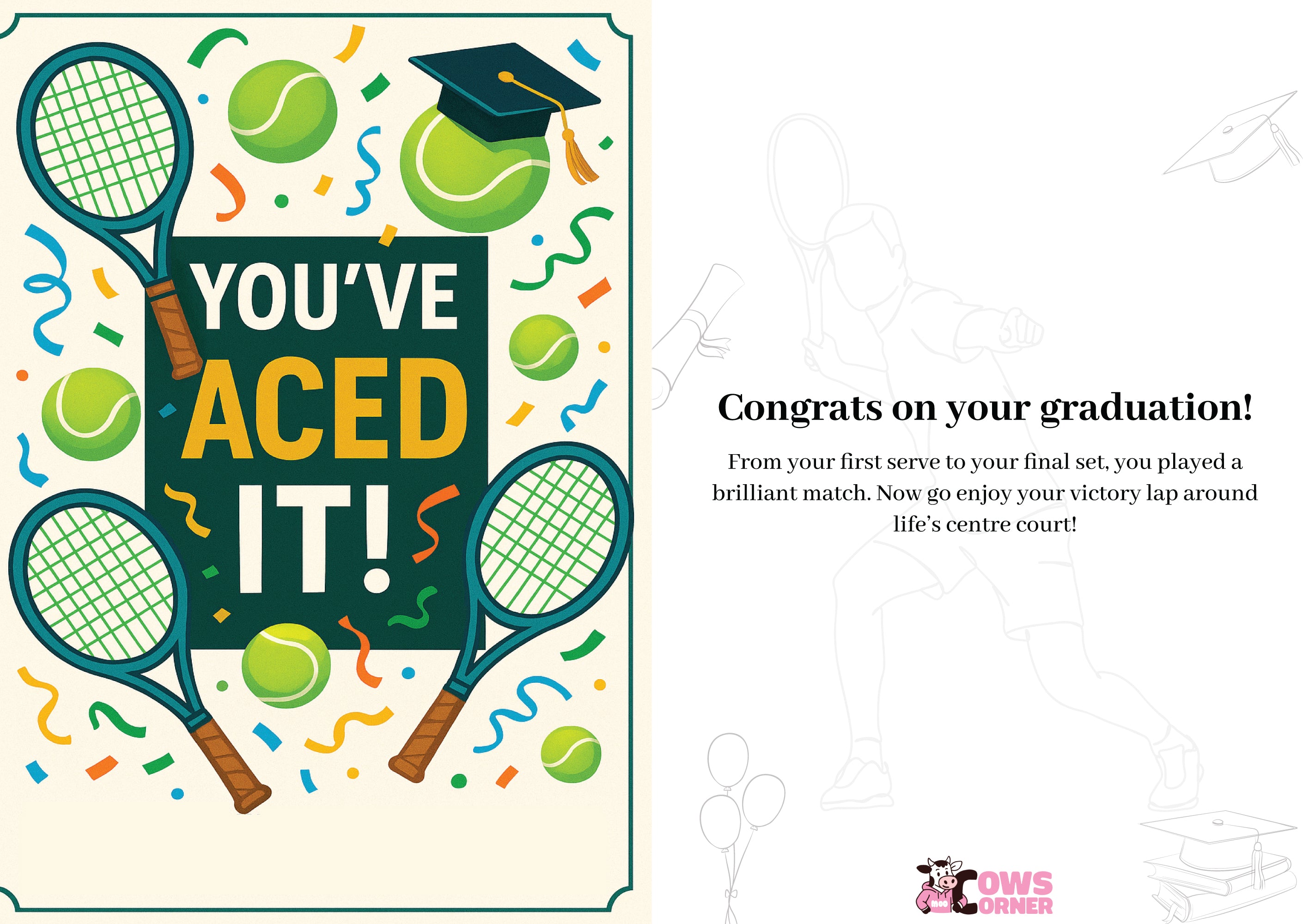 At Cows Corner, we designed this card to appeal to anyone with a love for the game. Whether they have spent years competing on the court or simply enjoy the drama of a championship final, the "You’ve aced it" message resonates perfectly. It hits the sweet spot for players and spectators alike by celebrating their hard-earned success with a nod to their favourite sport.